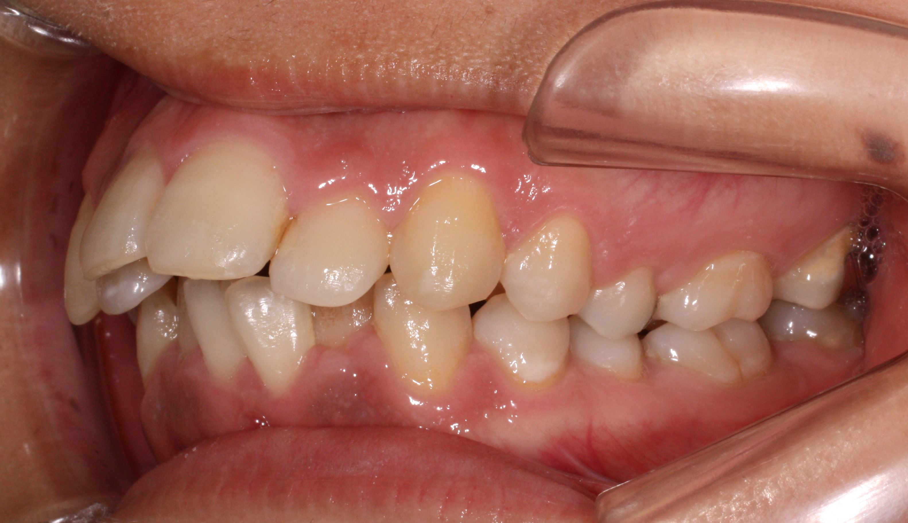 口元の突出を気にして来院された、16歳の女性です。上下の歯の傾斜が大きいため、上下顎4本抜歯を併用してマルチブラケット治療を行いました。治療期間は1年5か月で、歯並び・かみ合わせとも良好に改善しました。