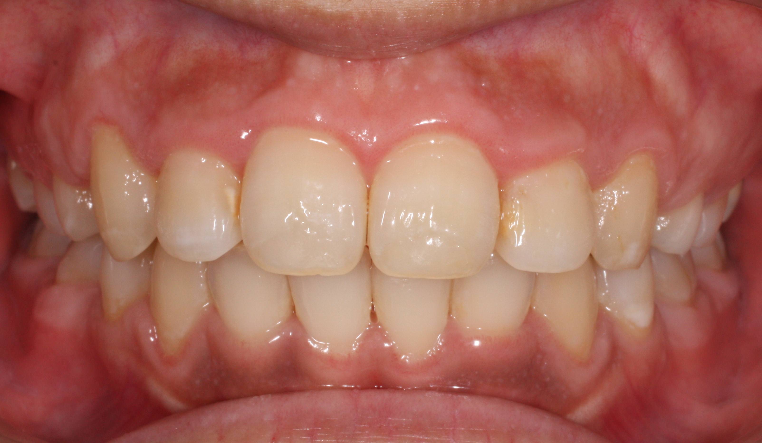 歯のガタガタを気にされて来院した18歳11か月の女性です。上下顎左右側小臼歯4本を抜歯してマルチブラケット治療を行いました。マルチブラケット治療期間は1年8か月で、歯並び・かみ合わせとも良好に改善しました。